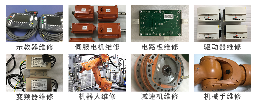 示教器、伺服電機、減速機、驅(qū)動器、變頻器、電路板、機械手、控制柜、電源、機器人本體......
